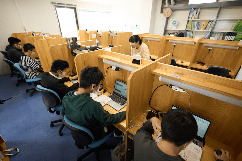 当学院では、一人ひとりが自分のペースで集中して学べるよう、個別学習ブースを設けています。周囲の影響を受けにくい静かな環境で、落ち着いて学習に取り組めます。